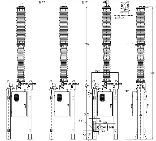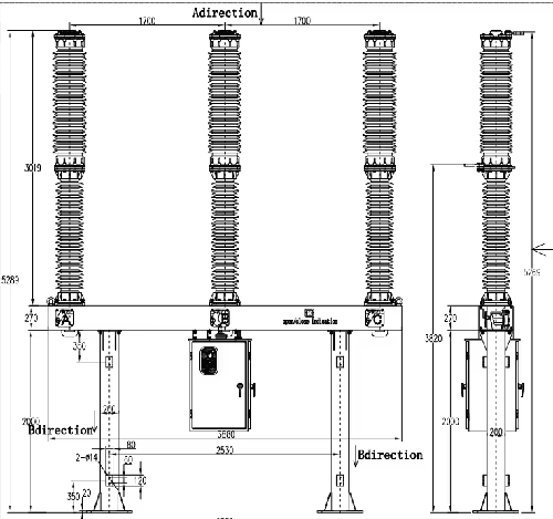 Trijų fazių aukštos įtampos 35 kV 40,5 kV vakuumo grandinės pertraukiklis su transformatoriumi