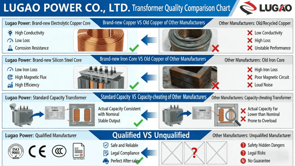 „Lugao“ trijų fazių 200 KVA 250 KVA 400 KVA pusgaminiai aliejumi panardinami skirstomieji transformatoriai naudoja pažangią izoliacijos technologiją ir aukštos kokybės silicio plieno šerdis, todėl nuostoliai tuščiosios eigos metu sumažėja. Lugao turi profesionalią gamyklą ir bandymų įrenginį, užtikrinančią griežtą kokybės kontrolę. Turėdami daug atsargų, jie gali greitai pristatyti ir pasiūlyti OEM sprendimus.